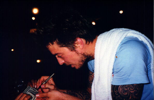 Tim signing autographs